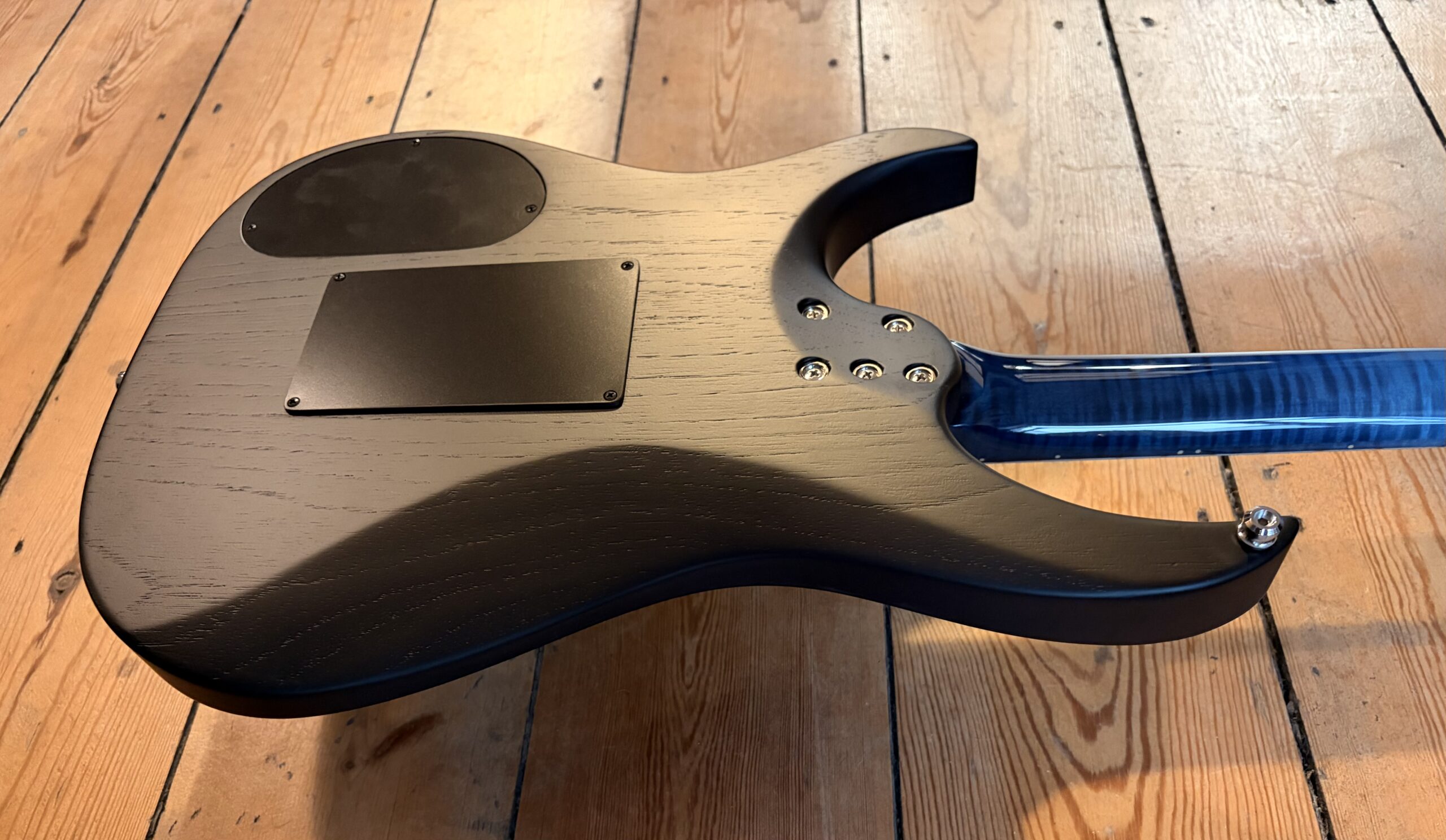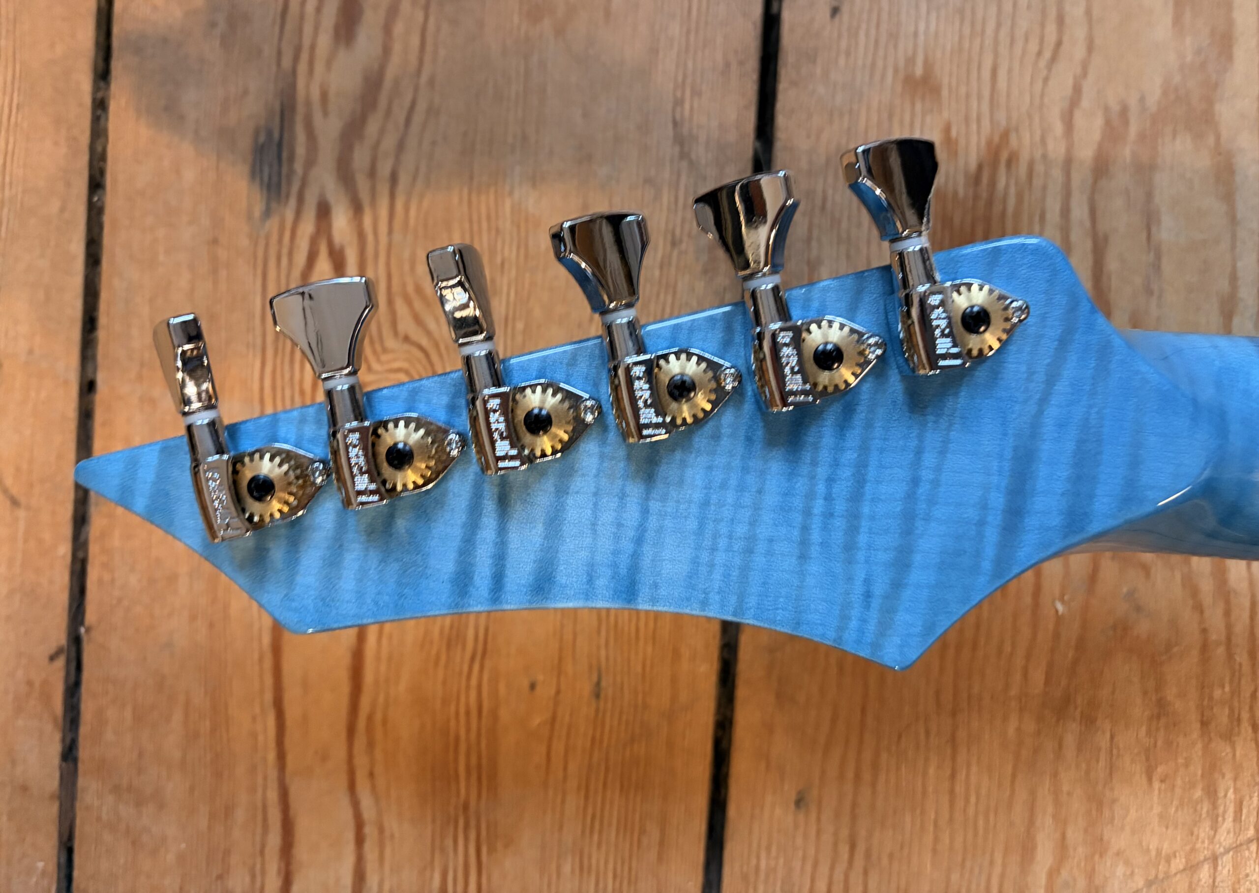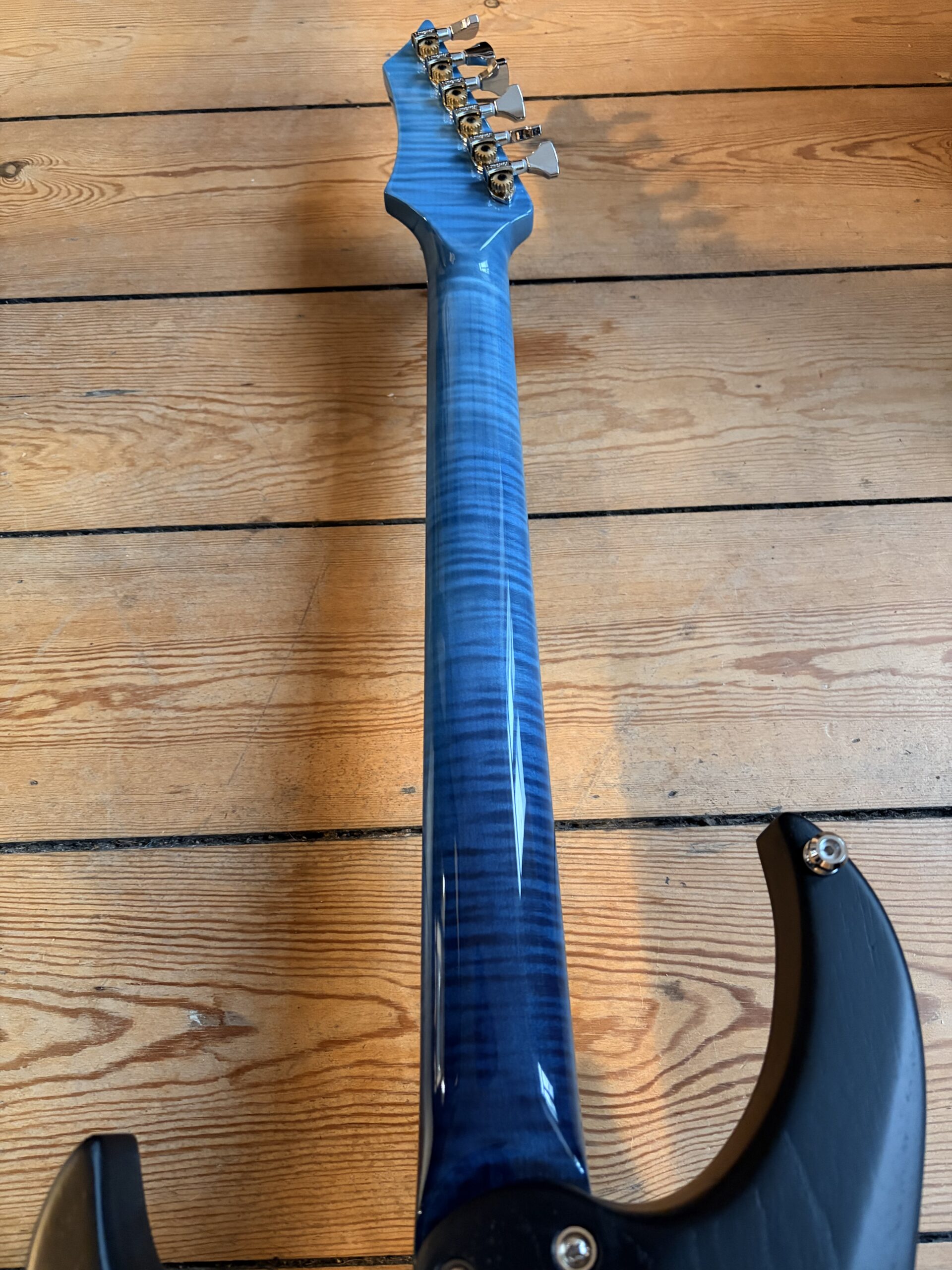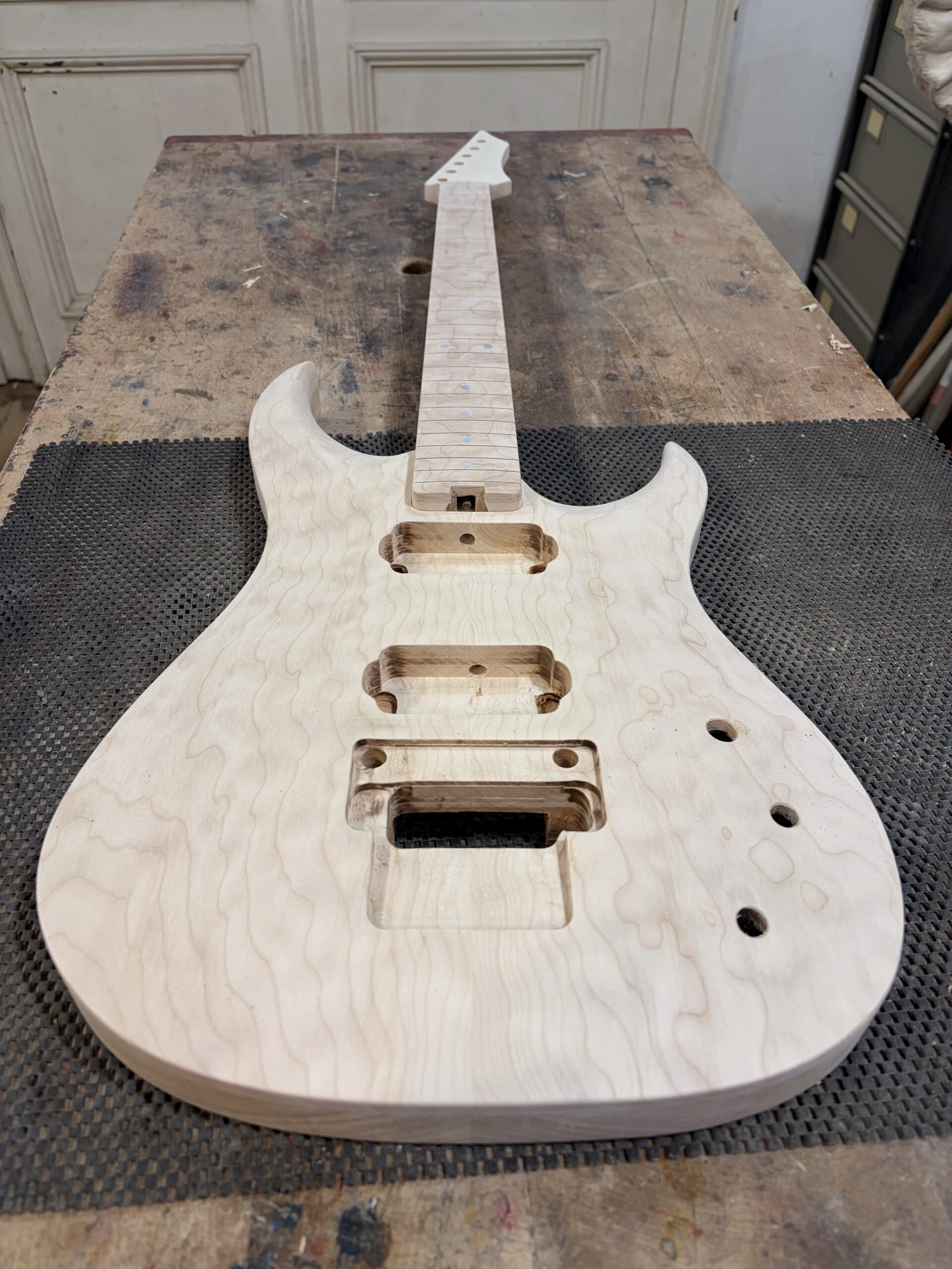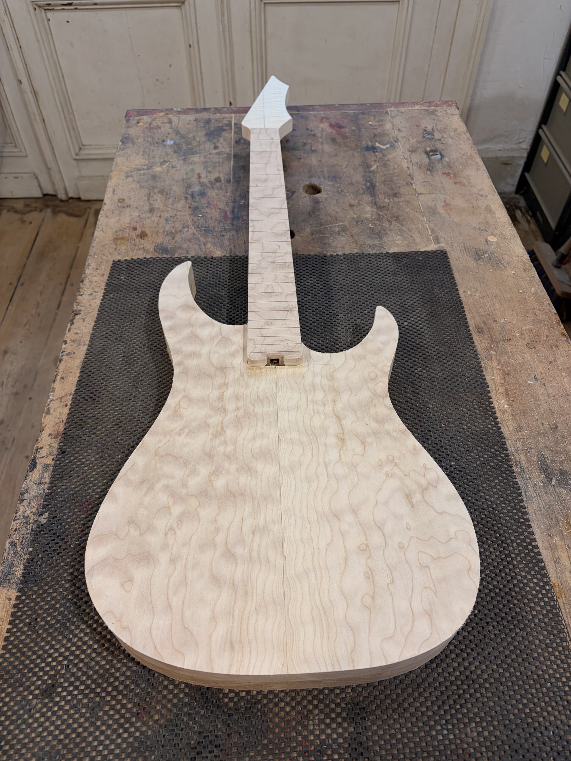 - Un manche vissé en érable ondé sur quartier.