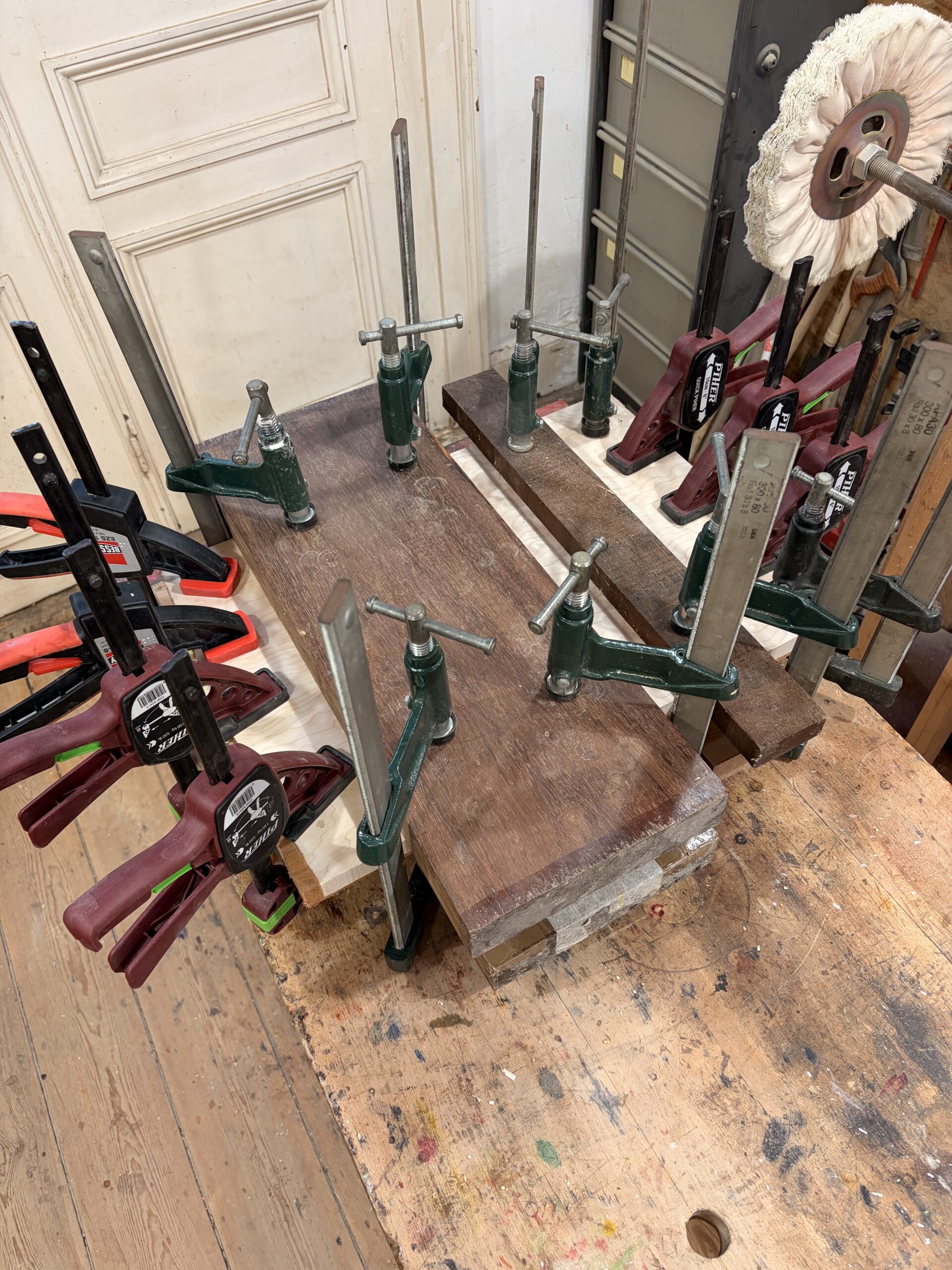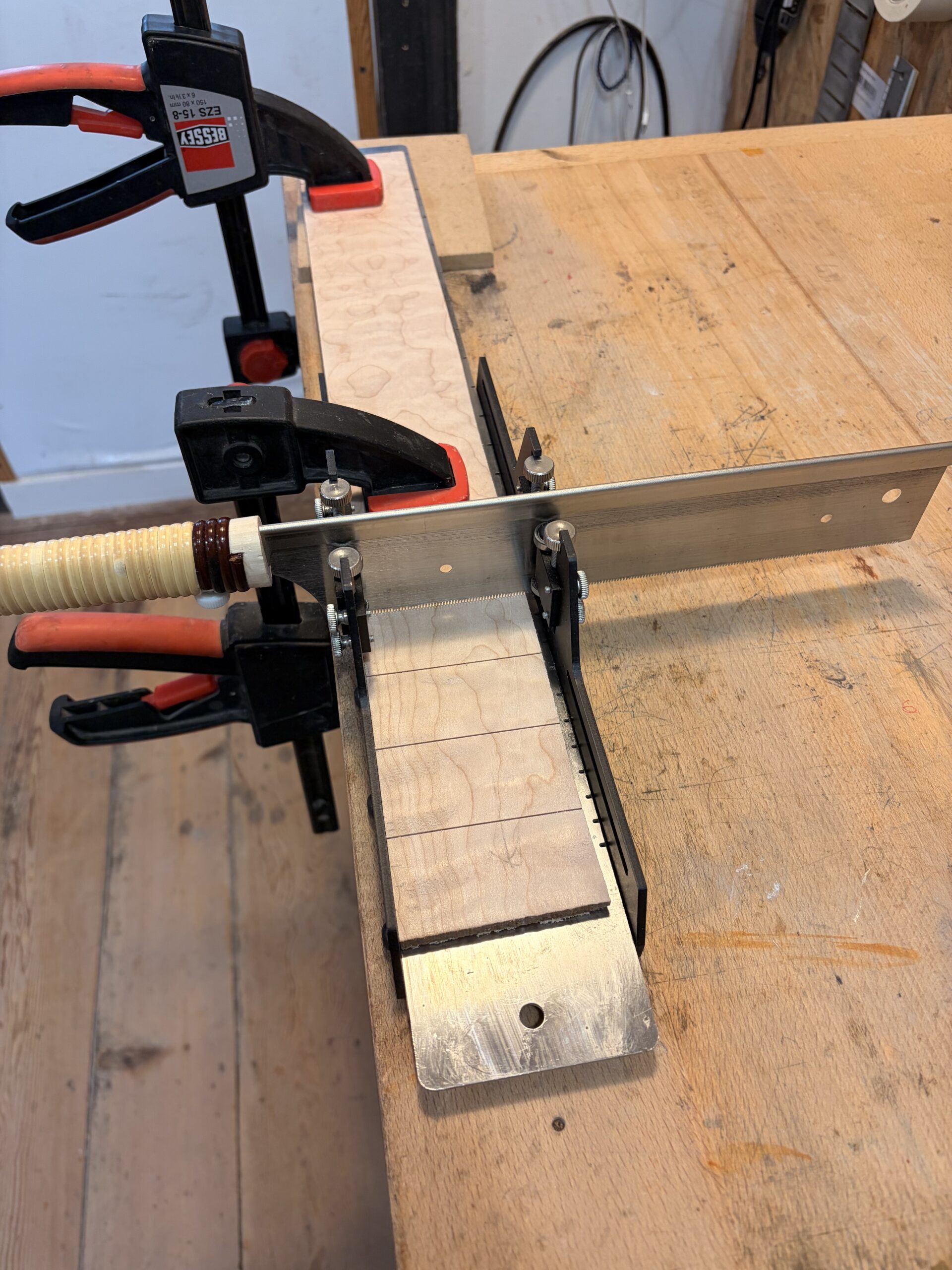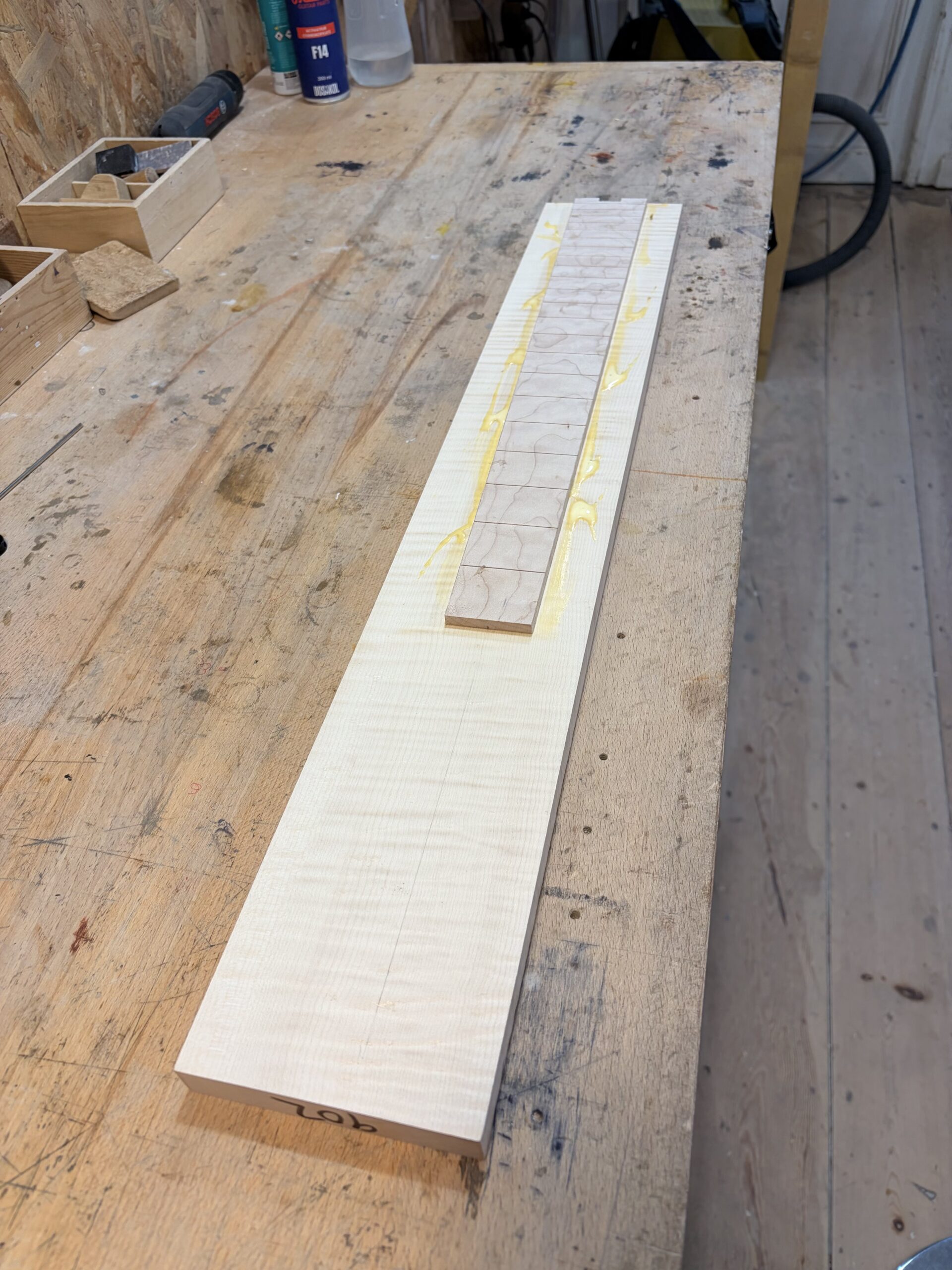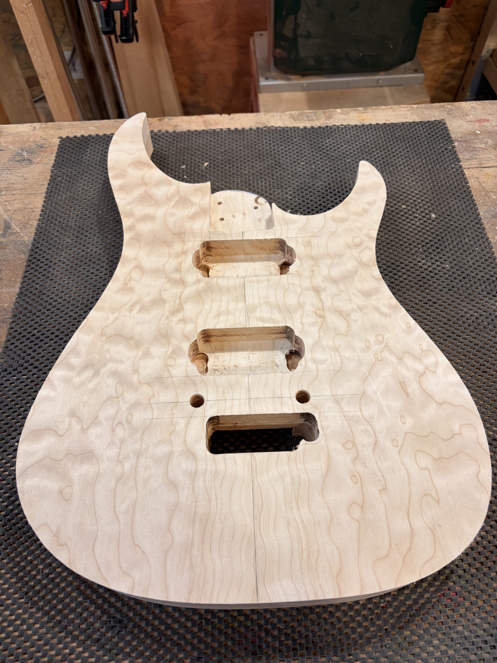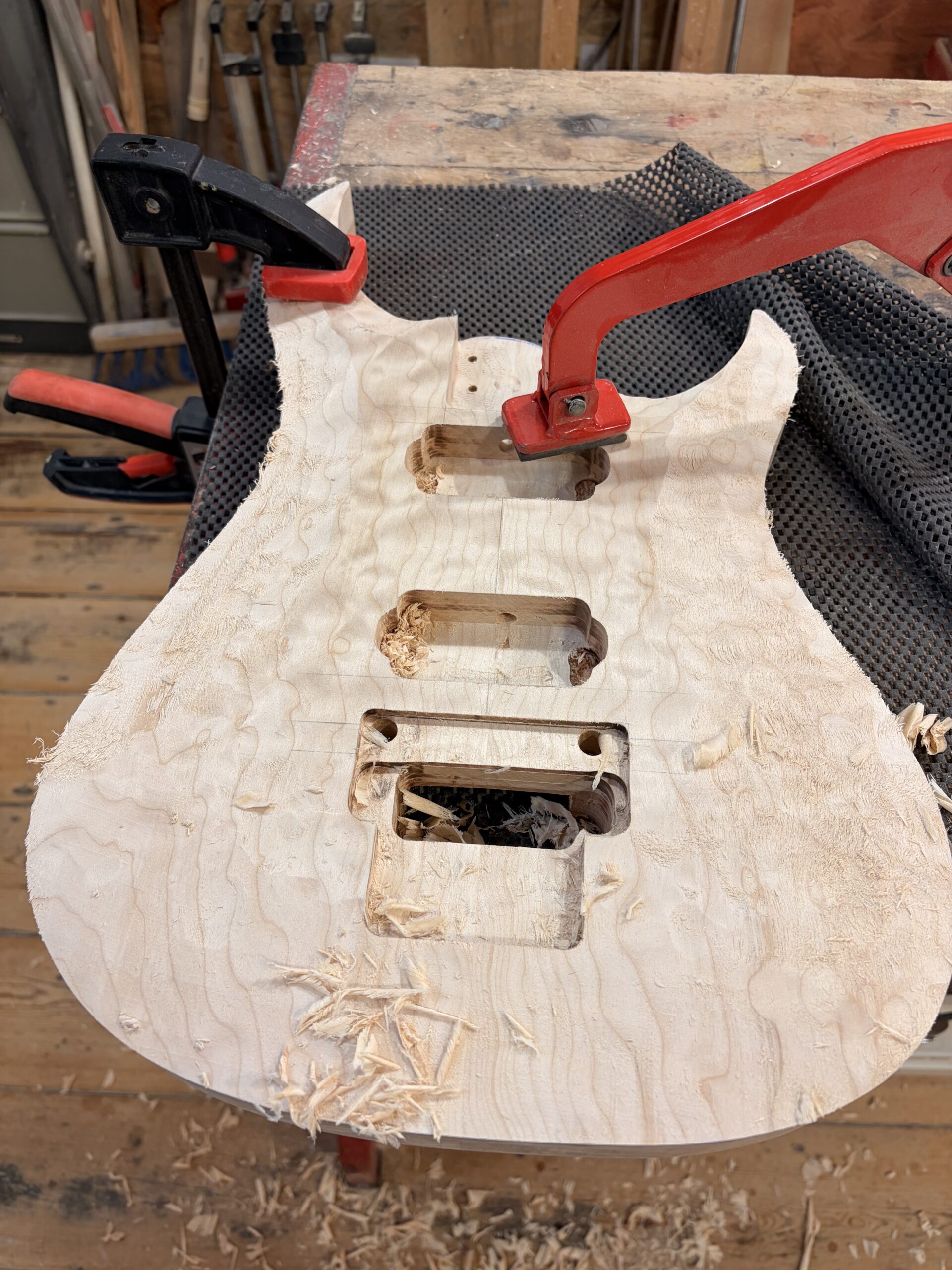 - Un manche vissé en érable ondé sur quartier.