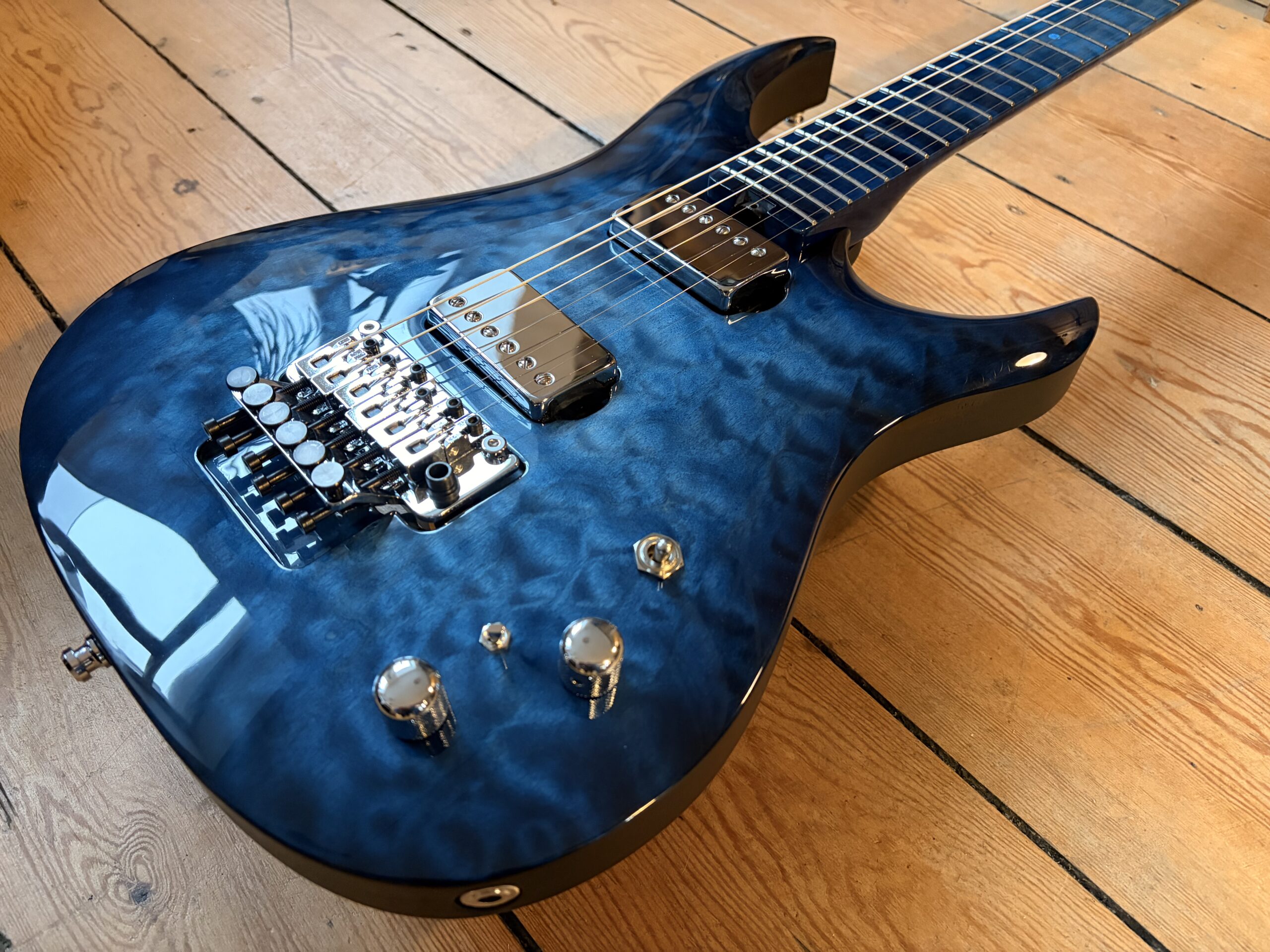 - Une touche en en quilt Maple . Repères de touche en nacre .
