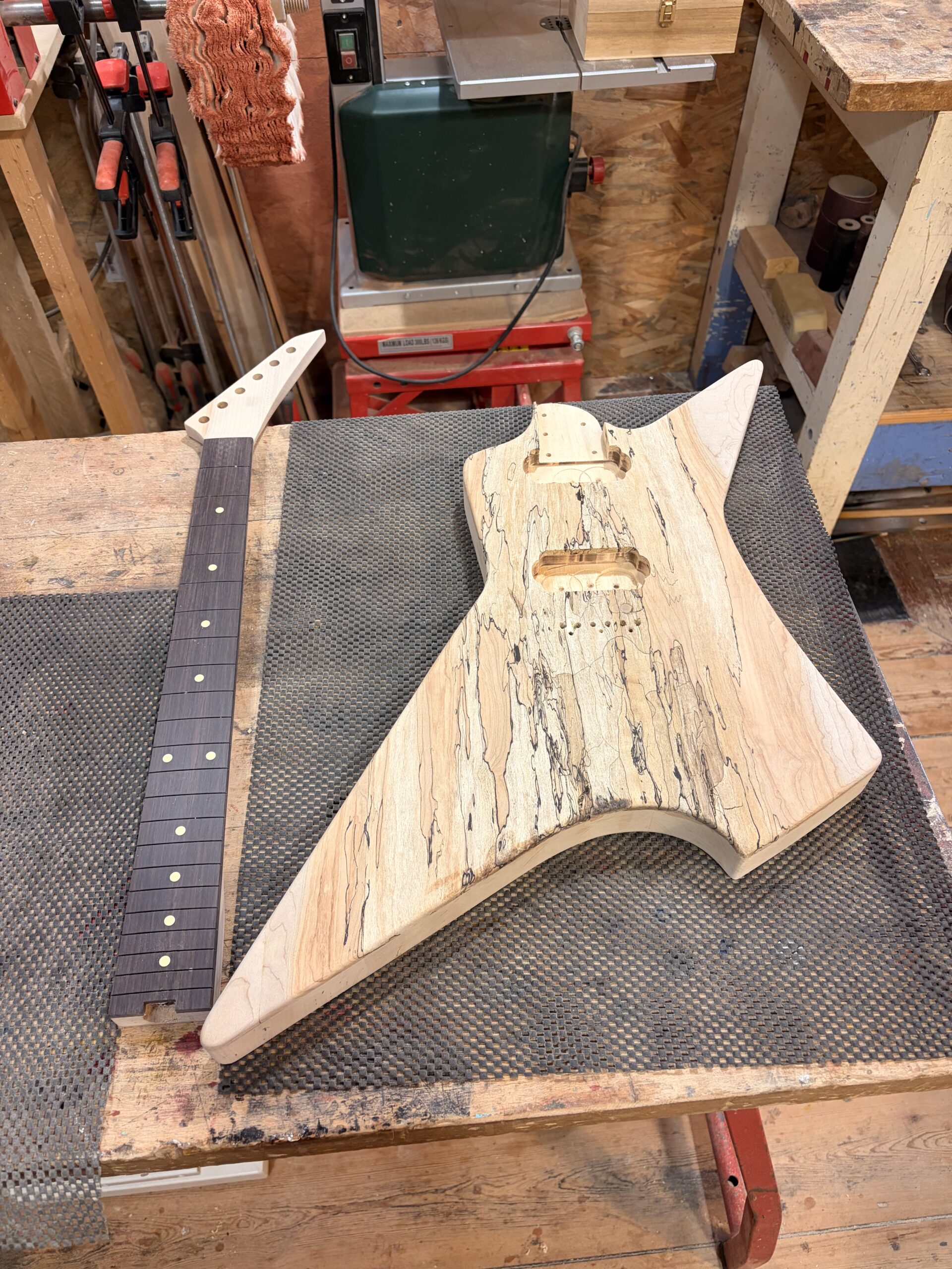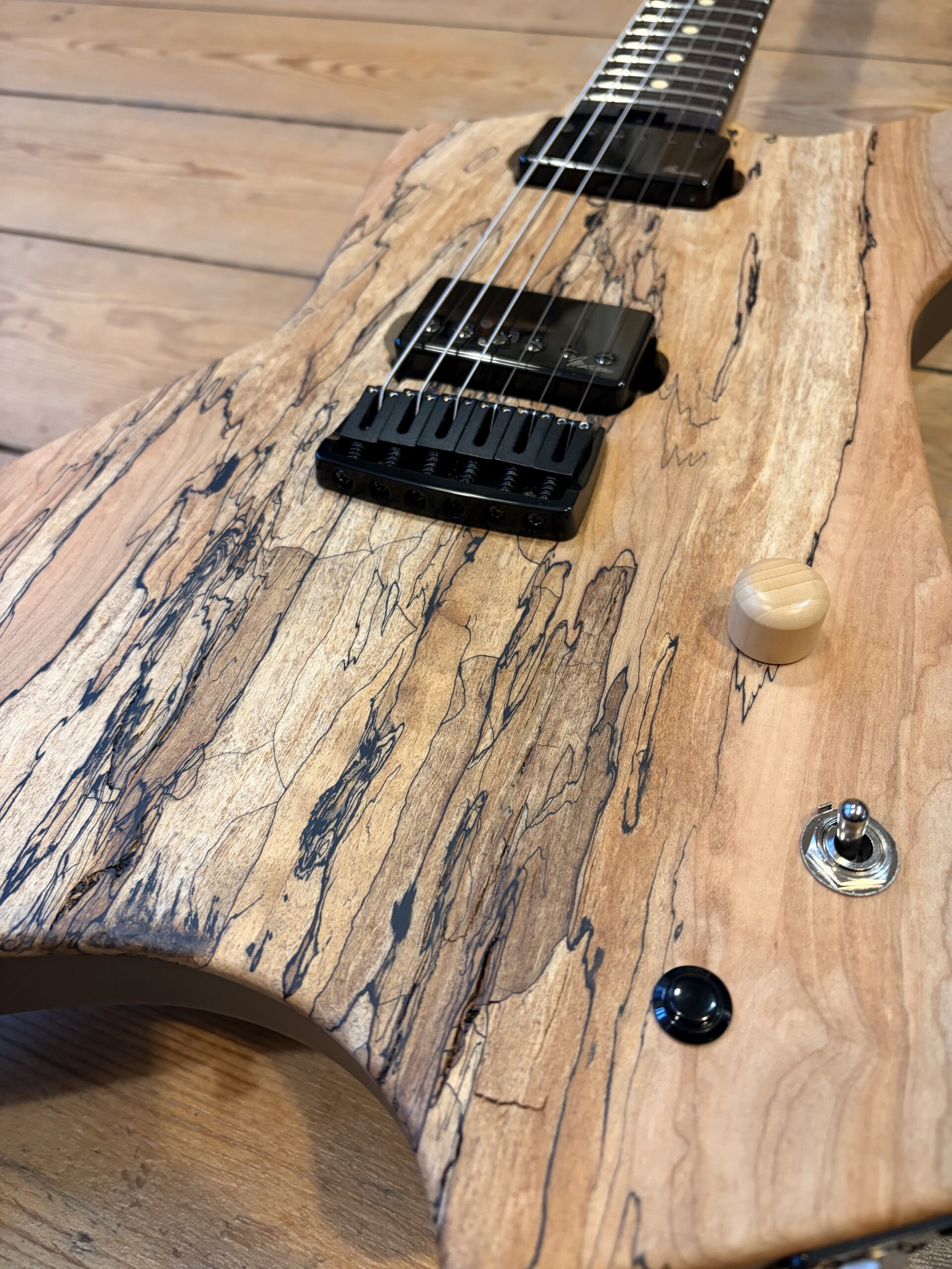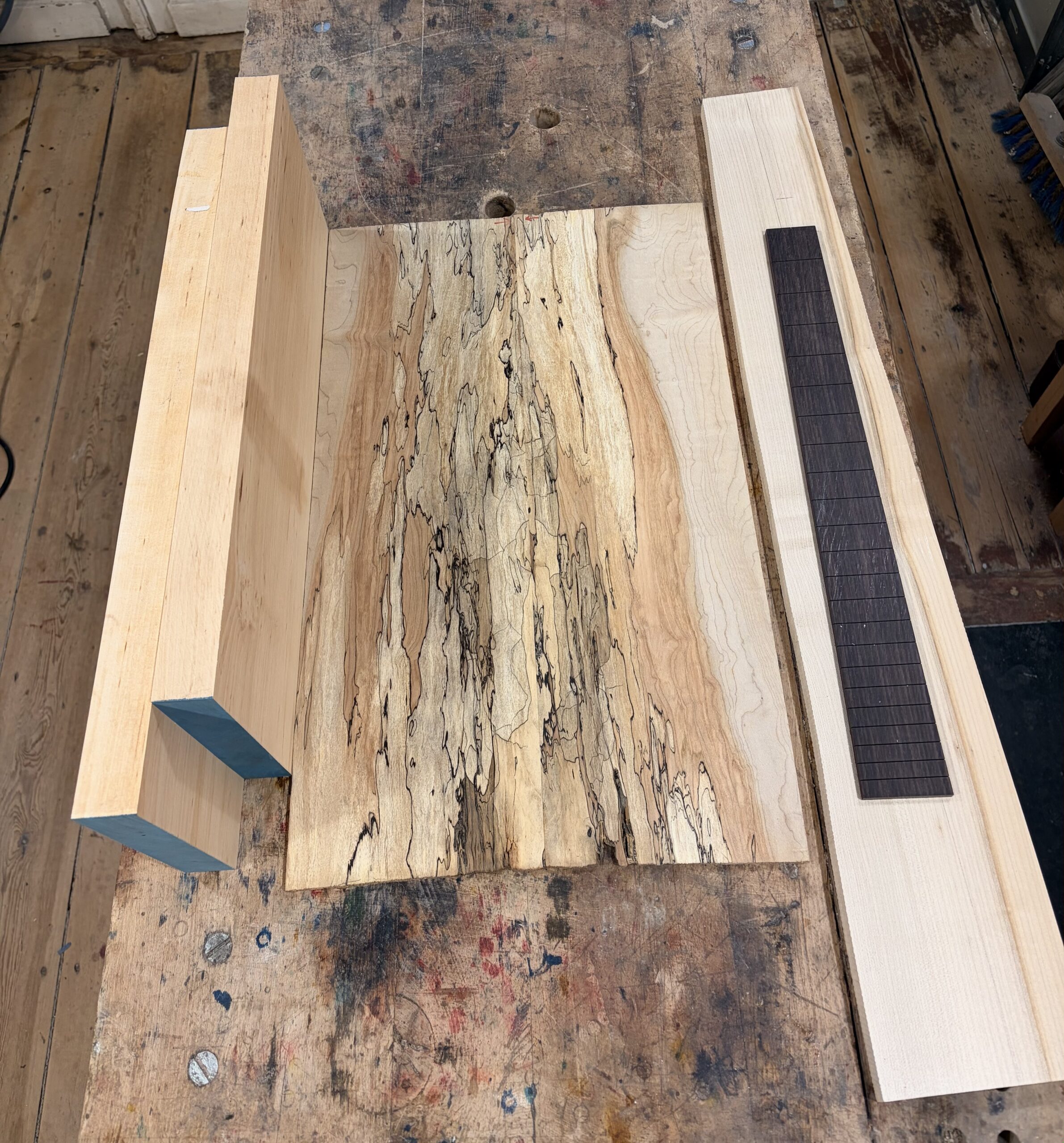 - Un manche vissé érable coupé sur quartier.