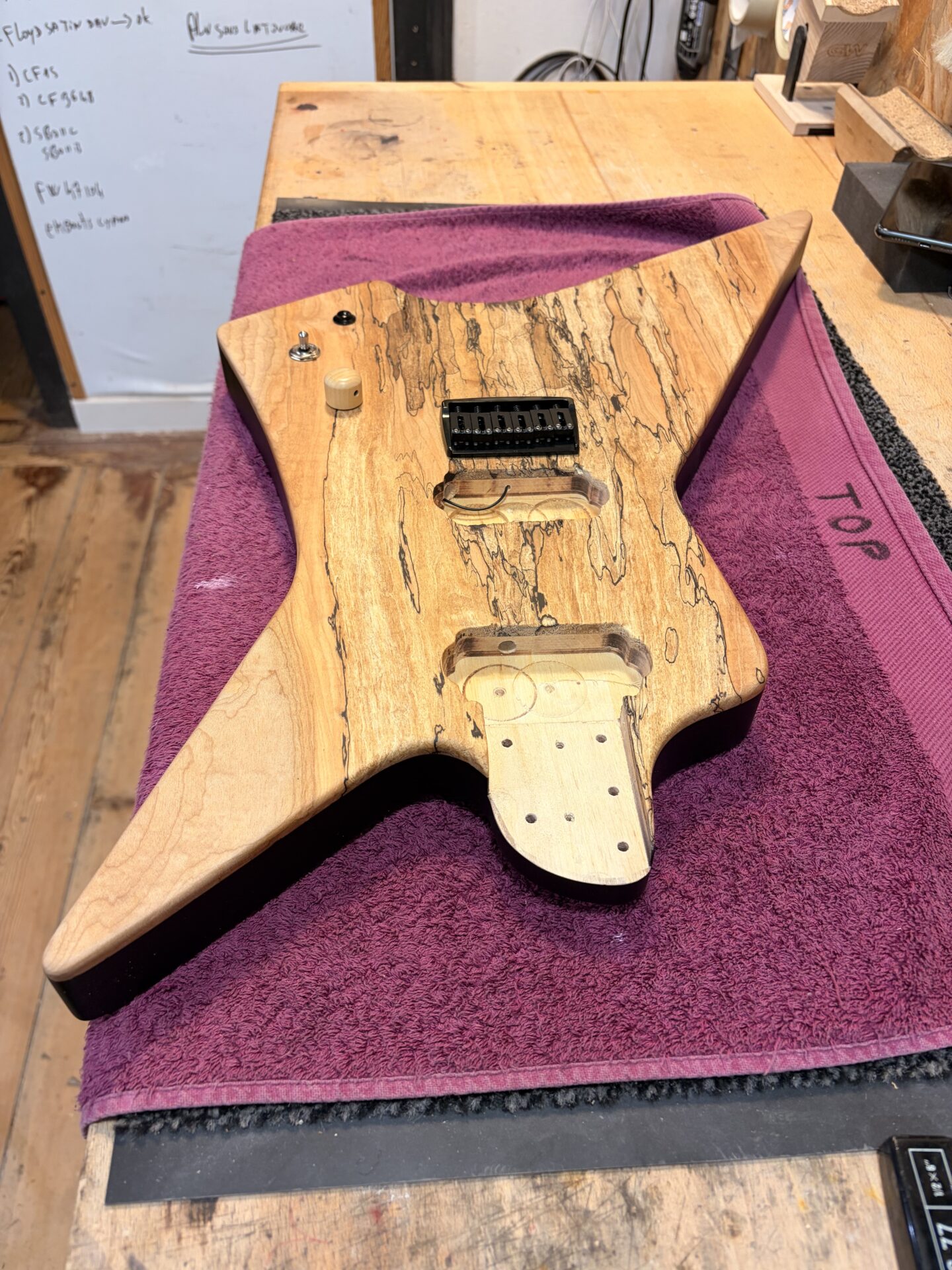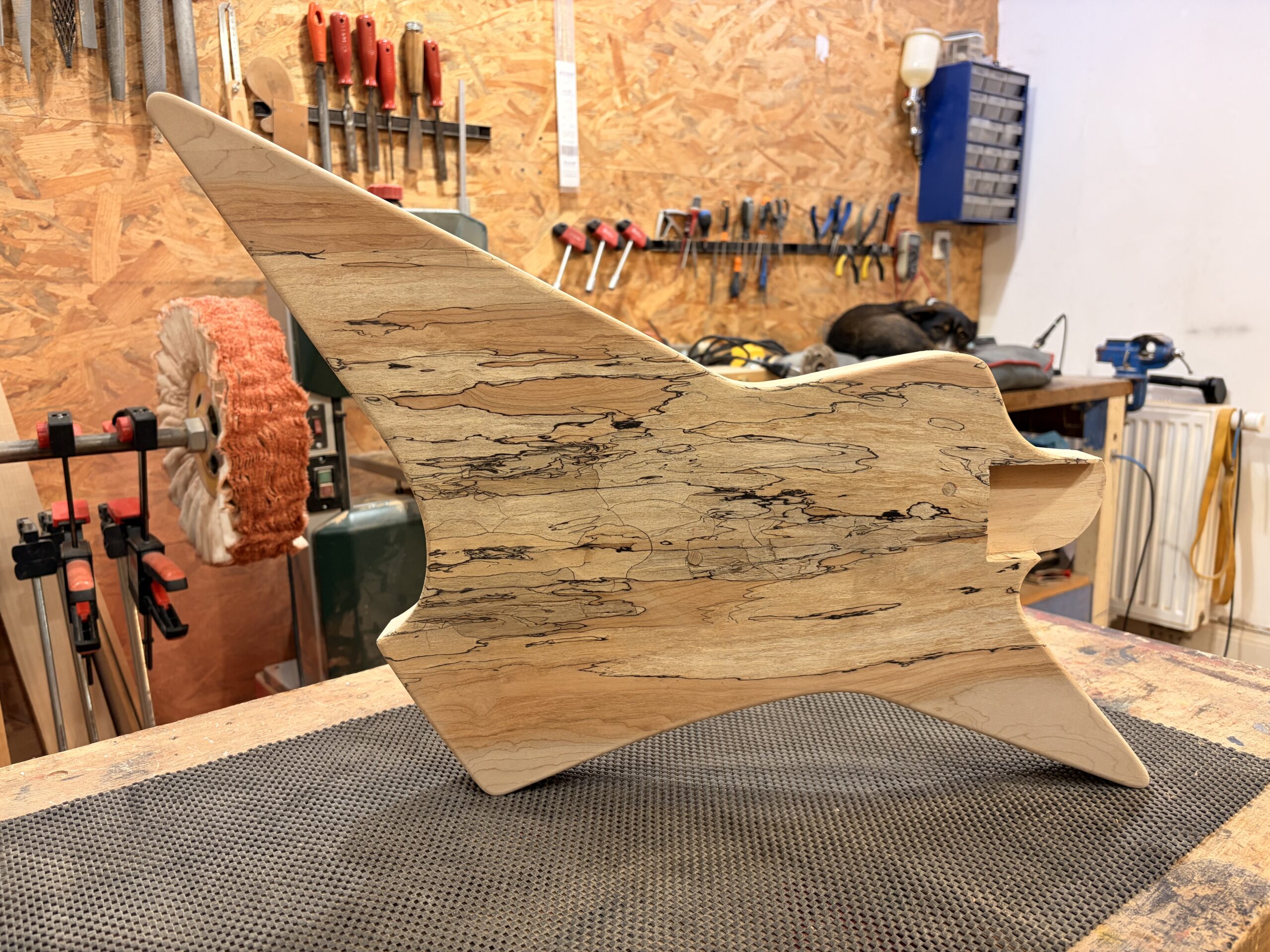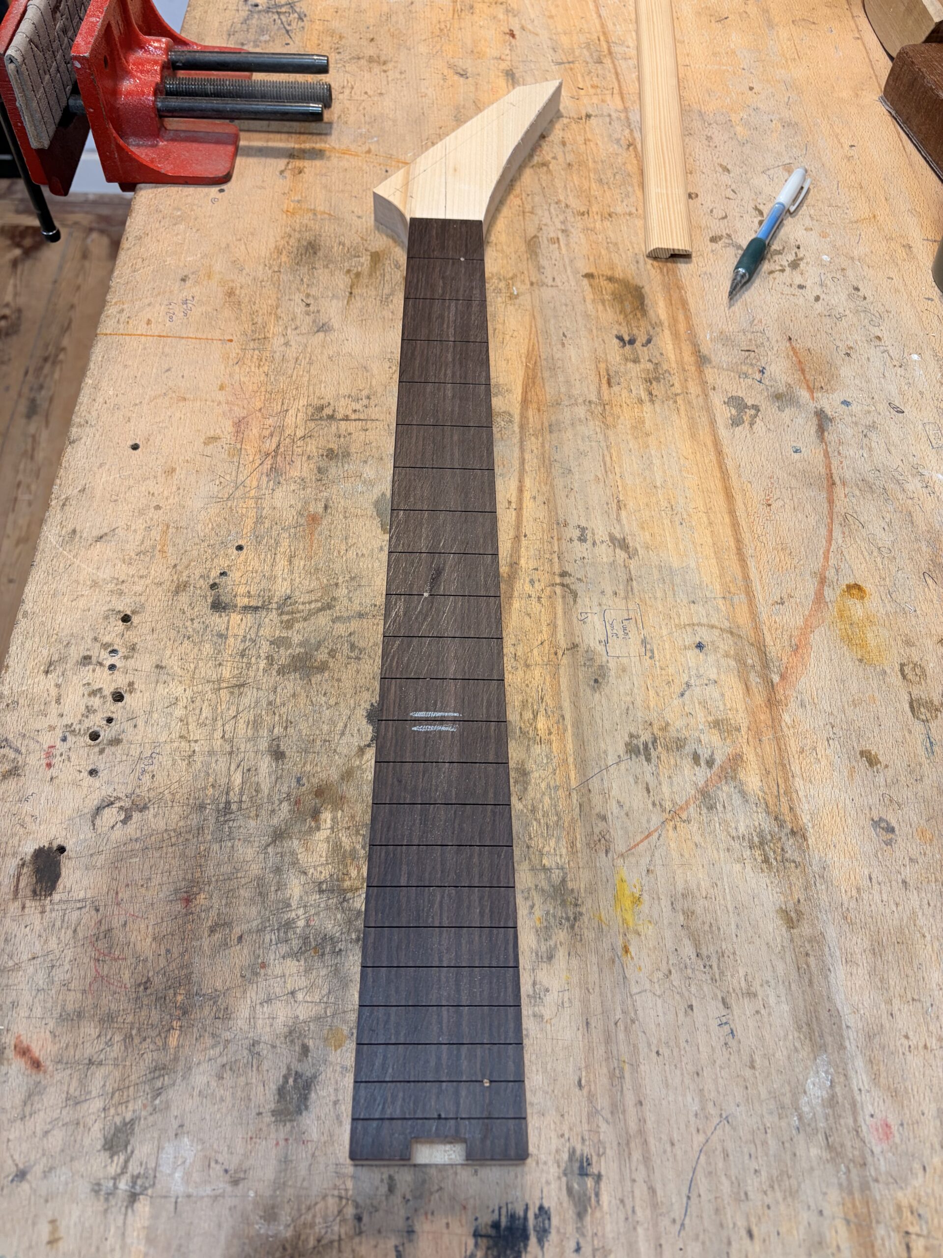- Un manche vissé érable coupé sur quartier.